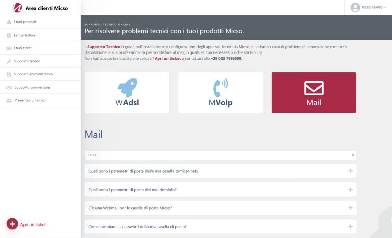 Alle voci relative al supporto (tecnico, commerciale e amministrativo) troverai la FAQ con le domande più frequenti!
