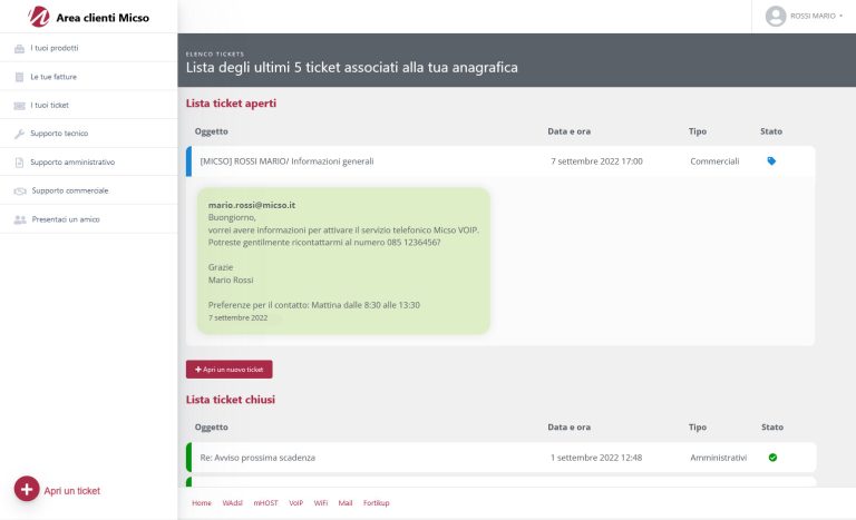Alla voce “I tuoi ticket” potrai controllare tutte le richieste gestite dal supporto MICSO IT.